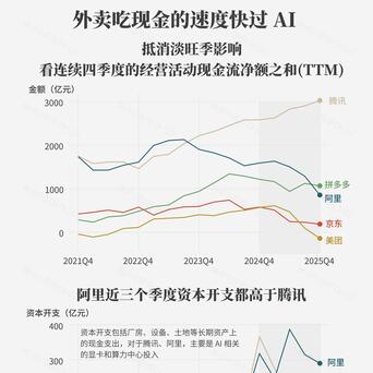 · 所有公司都在说 AI,阿里是上市公司里投入规模最大的,一年 1200 多亿资本开支(主要用于扩建算力中心),比腾讯多 446 亿。但在外卖大战最激烈的三四季度,阿里的光新增的销售费用(大部分用于补贴和广告)就超过了资本支出。