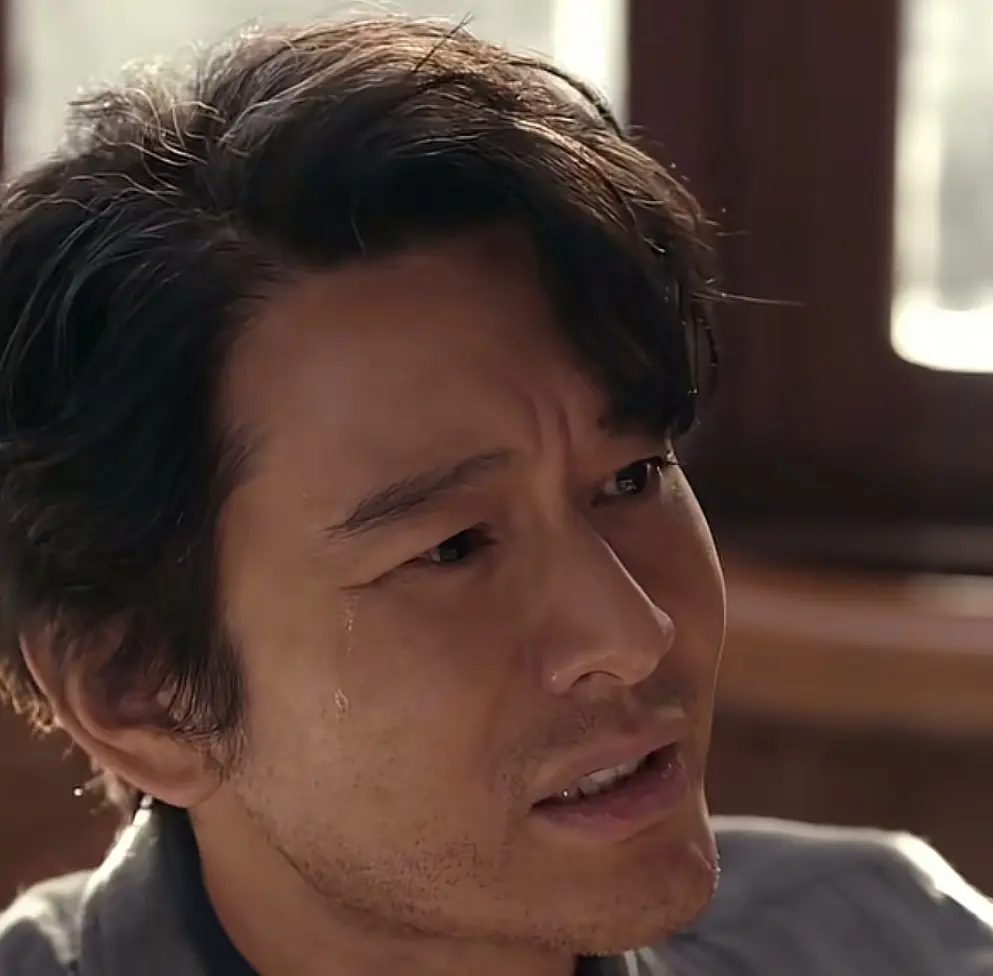 抱腹,跪在地上,额头贴着地面,即便看不到正脸的表情,也能从侧脸看到他扭曲的面庞,那是从内引发出来的疼痛的模样,不是夸张的硬演尬演,正面嘴唇发白,面目呆滞,像是生生被折磨得已经没有一点力气一样。