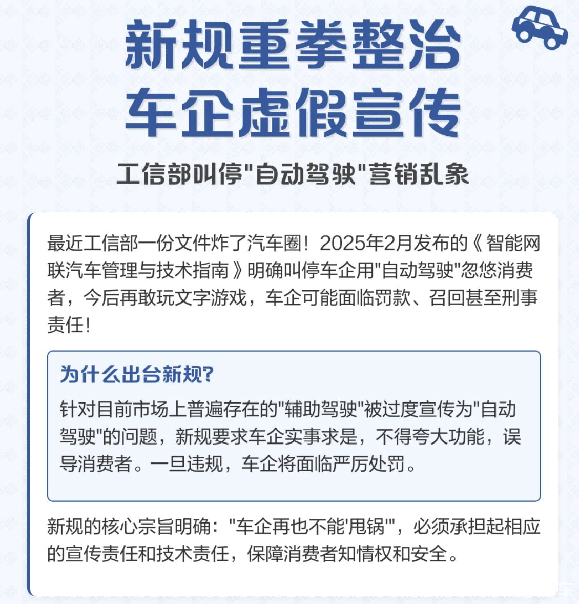 全国人大代表刘懿艳指出,市场上存在大量误导性宣传,有些企业有意模糊“辅助驾驶”与“自动驾驶”的界限,用“L2.9”等术语营造“已经可以自动驾驶”的假象。这种宣传加剧了公众误解,但法律不能跟着误解走。最高法的指导案例,正是对这种误解的有力纠偏。